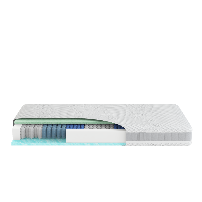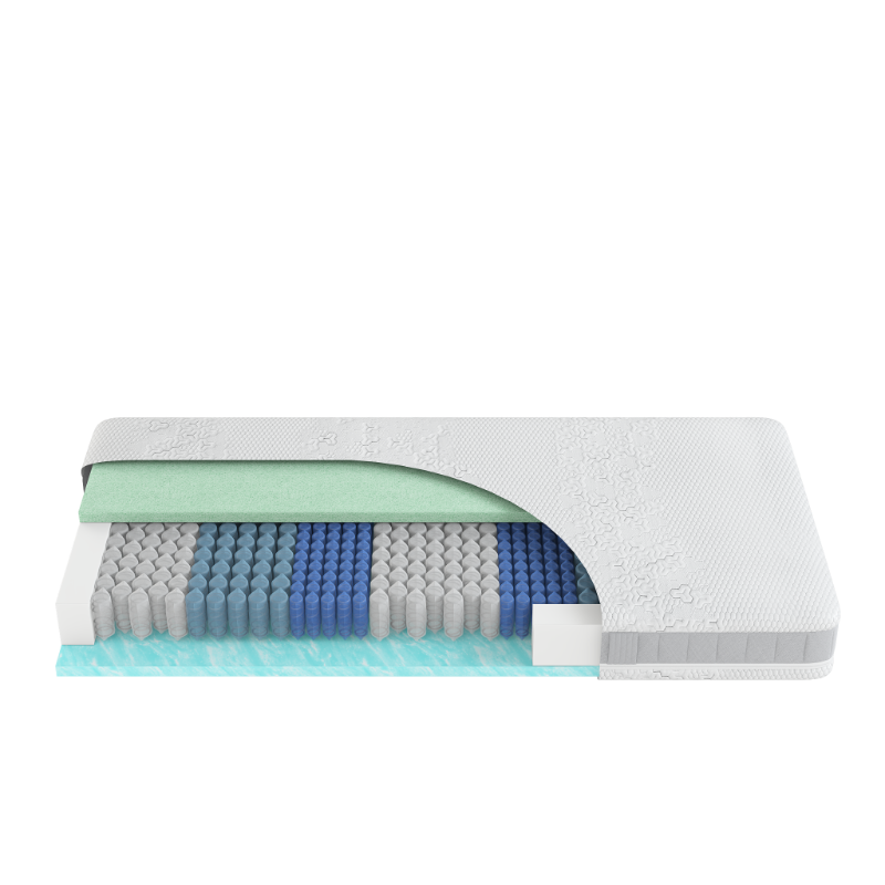 Durch das speziell entwickelte Zusammenspiel von Form, Festigkeit, Anzahl und Anordnung der Federn, entstehen unterschiedliche Federsysteme die sich auf 7 Zonen im Matratzenkern verteilen. Diese Aufteilung lässt deine unterschiedlichen Körperpartien präzise unterstützen und deine Muskeln optimal erholen.